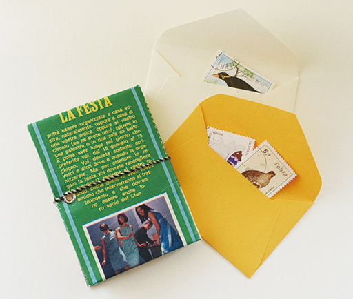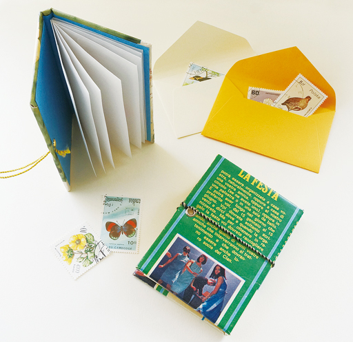 段ボール、昔の洋雑誌、名刺封筒を使って