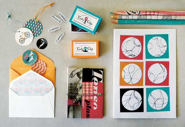 オリジナルのパターンを使った、レトロな小物雑貨、ペーパーアイテムなど