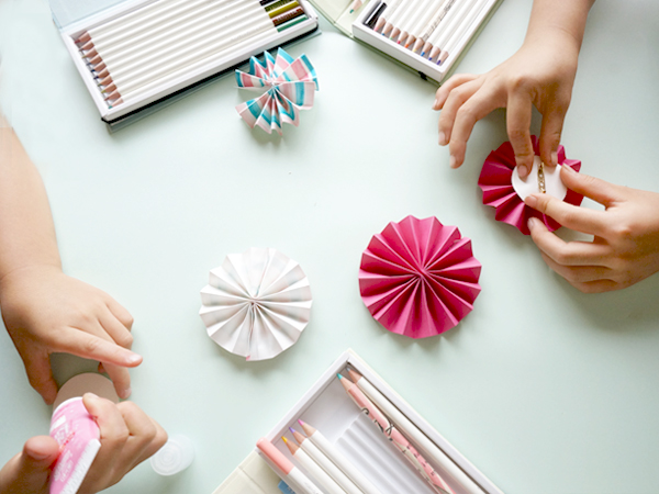 当日作るのは華やかな印象のペーパー・ロゼット。