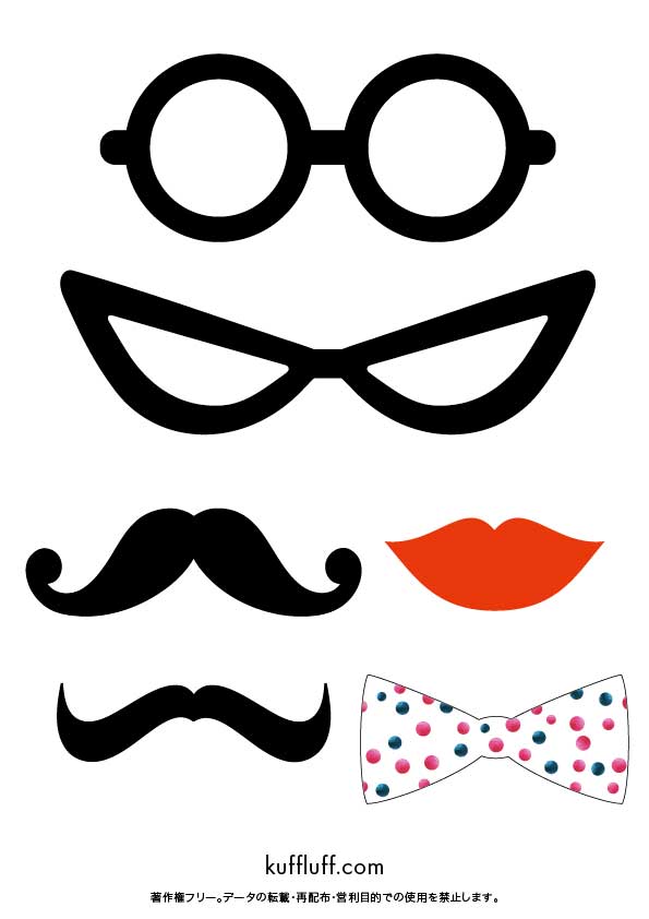 眼鏡、ヒゲ、リボン等、様々な種類を作ってみました。