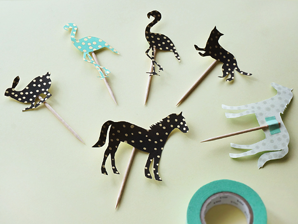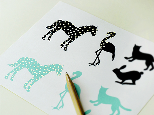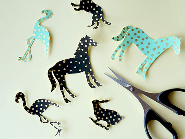 動物のシルエットをプリントし、(素材はネット等で探してみてください。)