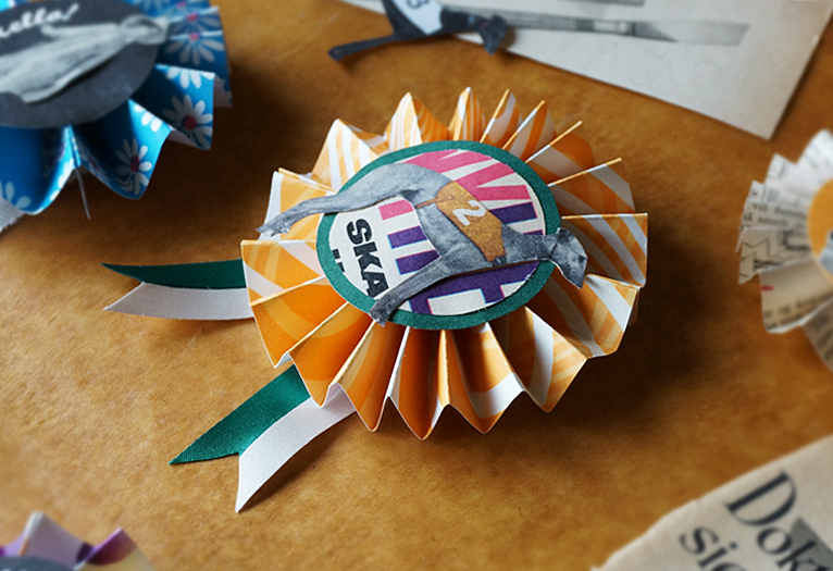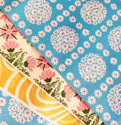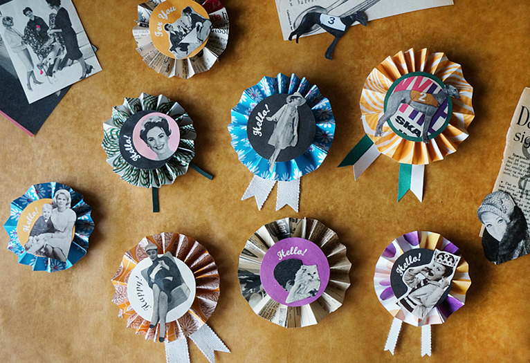 デッドストックのレトロ包装紙、海外のアンティーク雑誌等を使って